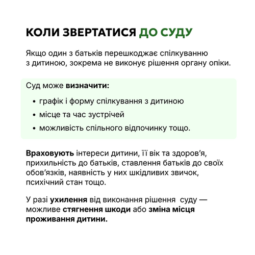 Той із батьків, хто живе окремо, має право брати участь у вихованні та спілкуватися з дитиною, а інший не має права цьому перешкоджати, якщо це не шкодить дитині.